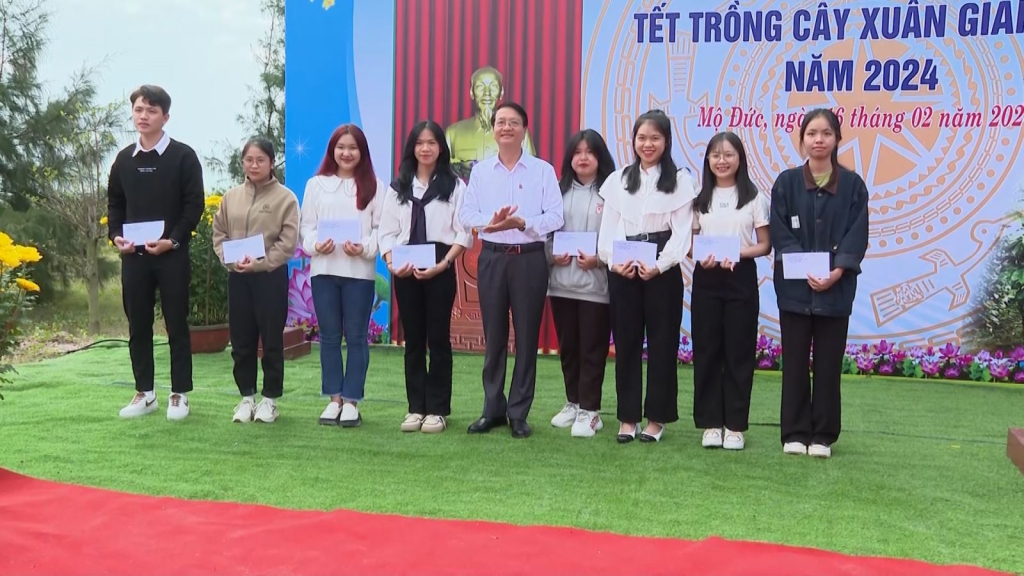 Tại buổi lễ Uỷ ban Nhân dân huyện Mộ Đức đã trao 10 suất quà cho các em học sinh đạt thành tích xuất sắc trong học tập trên địa bàn xã Đức Lợi.