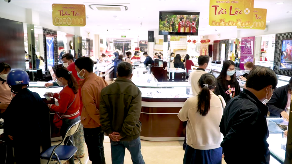Người dân tranh thủ đi mua vàng từ đầu giờ hôm nay để tránh tập trung đông người. Giá ở các tiệm vàng tại thành phố Quảng Ngãi sáng nay giảm nhẹ từ 30 - 50 ngàn đồng, khoảng 5,5 triệu đồng một chỉ. Trong văn hóa phương Đông, vàng tượng trưng cho sự giàu sang, phú quý, sung túc và may mắn. Dù là người kinh doanh, buôn bán hay bình thường, người dân cũng tranh thủ mua sắm ít để cầu may mắn.