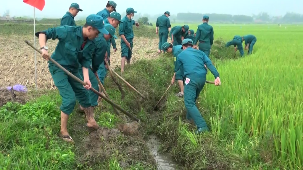 Ngoài thời gian huấn luyện tại thao trường, bãi tập, các chiến sỹ dân quân Ban Chỉ huy quân sự thành phố Quảng Ngãi còn tích cực tham gia công tác dân vận tại Tổ dân phố Quyết Thắng, phường Trương Quang Trọng. Mỗi chiến sĩ một phần việc tích cực giúp nhân dân khơi thông các tuyến kênh mương nội đồng. Trong thời gian ngắn, với tinh thần nhiệt tình cán bộ, chiến sĩ dân quân đã tổ chức làm sạch hơn 2km kênh mương nội đồng, thu gom rác thải trên đồng ruộng tại địa bàn huấn luyện.