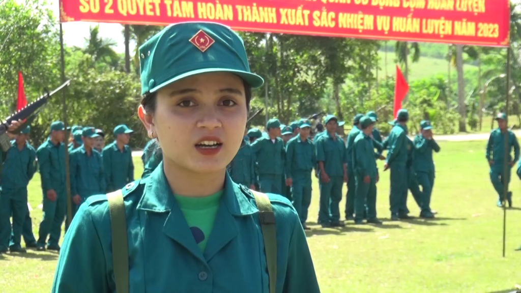 Chiến sỹ Đinh Thị Nuôi, Dân quân cơ động xã Sơn Trung, Sơn Hà nói: Đến với đợt huấn luyện lần này thì em đã được trang bị nhiều kiến thức cũng như kỹ năng về quân sự, quốc phòng như là bắn sung, điều lệnh, ném lựu đạn.