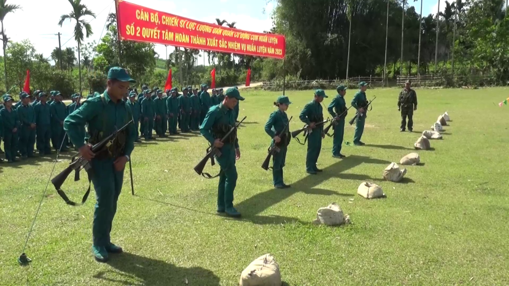 Với phương châm huấn luyện “Cơ bản, thiết thực, chất lượng”, sát với thực tế, phù hợp với yêu cầu nhiệm vụ của địa phương. Trong năm 2023, các chiến sĩ dân quân từ năm thứ hai trở lên được tham gia học tập chính trị, huấn luyện kỹ thuật, chiến thuật chiến đấu bộ binh, điều lệnh đội ngũ. Điều kiện huấn luyện khó khăn nhưng các chiến sỹ luôn rèn luyện bản lĩnh, nêu cao quyết tâm hoàn thành tốt các nội dung huấn luyện với chất lượng cao.