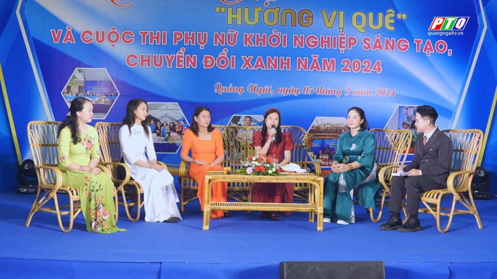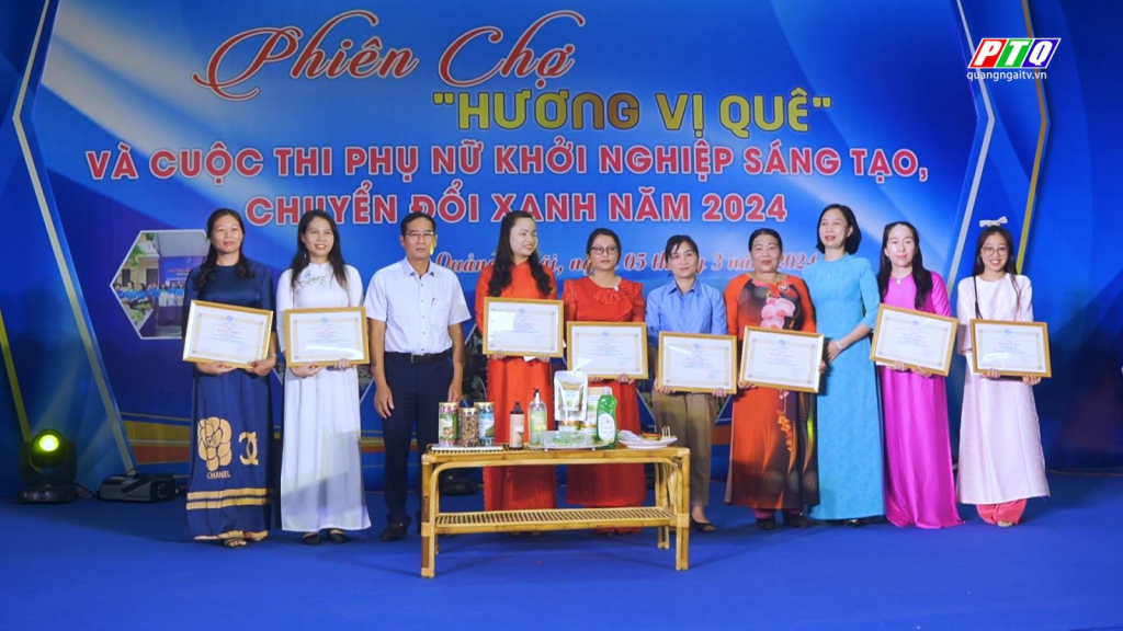 Tại Ngày Phụ nữ khởi nghiệp 2024, Hội Liên hiệp Phụ nữ tỉnh cũng đã biểu dương 08 cá nhân có ý tưởng khởi nghiệp, khởi sự kinh doanh tiêu biểu. Trong số này sẽ có 05 dự án được chọn tham dự cuộc thi do Trung ương Hội Phụ nữ Việt Nam tổ chức. Phiên chợ “Hương vị quê” có 15 gian hàng của Hội Liên hiệp Phụ nữ 13 huyện, thị xã, thành phố, đơn vị trực thuộc và Câu lạc bộ Khởi nghiệp đổi mới sáng tạo Quảng Ngãi. Các gian hàng trưng bày, giới thiệu hàng trăm sản phẩm khởi nghiệp của hội viên, phụ nữ, sản phẩm nông thôn tiêu biểu.
