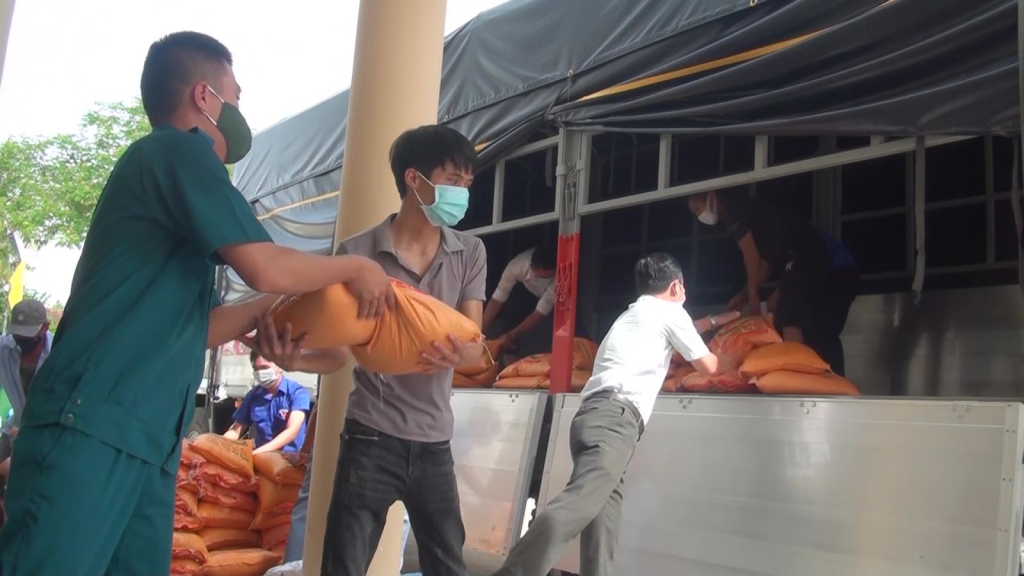 Nghĩa Hành gửi hỗ trợ 25 tấn nhu yếu phẩm cho đồng bào miền Nam.