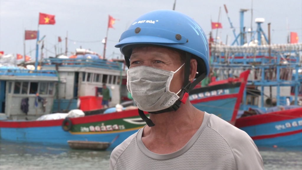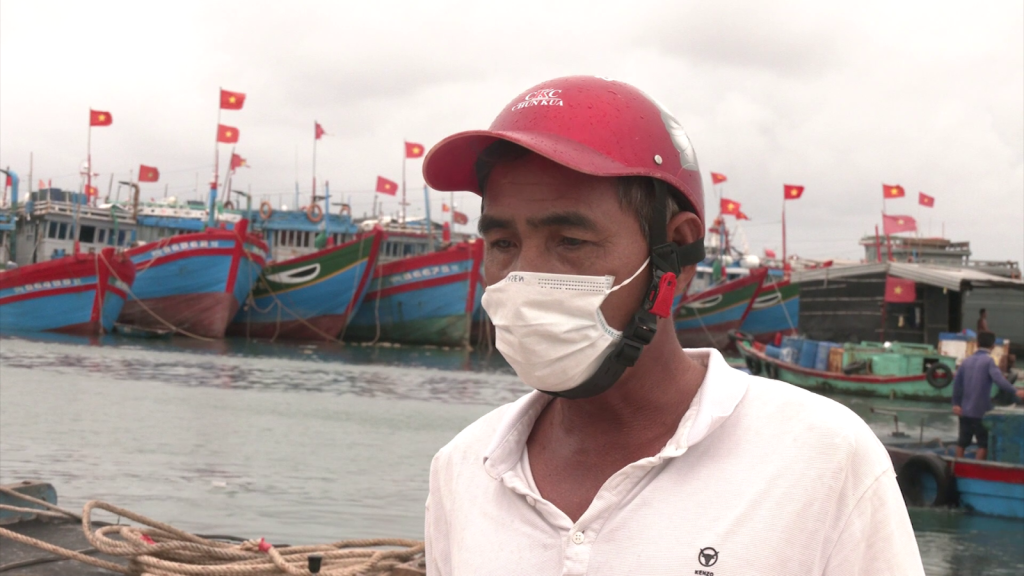 Ngư dân Nguyễn Lung, Tàu cá QNg - 96393 TS, huyện Lý Sơn, Quảng Ngãi nói: Nghe tin bão mình chạy tàu về cảng neo đậu cho nó bảo đảm.