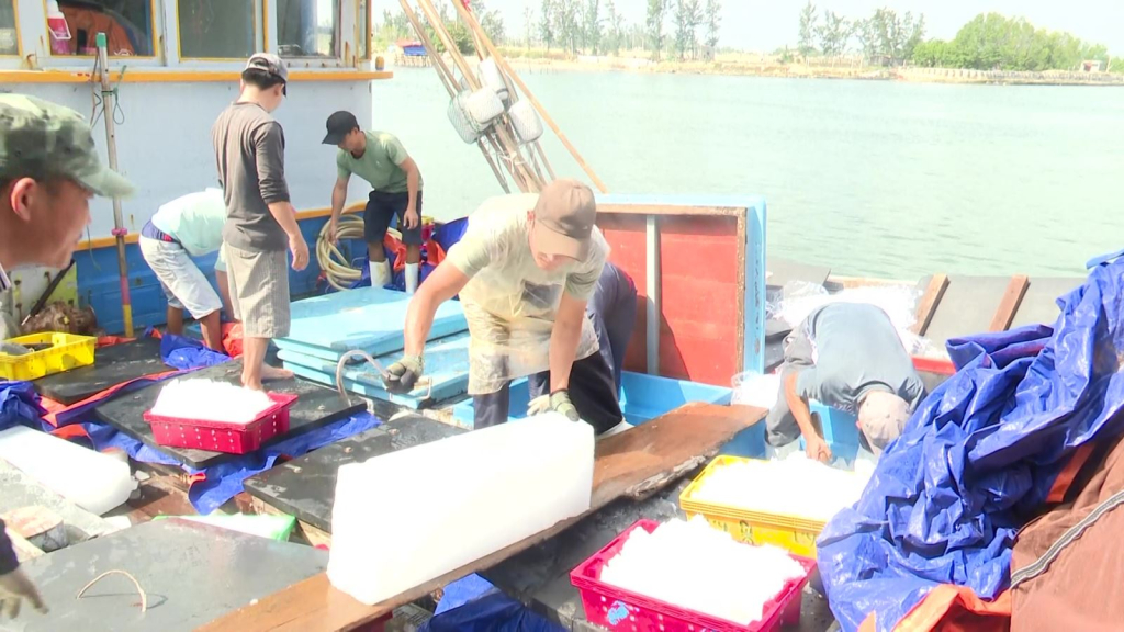 Anh Cao Thành Việt, xã Tịnh Kỳ, thành phố Quảng Ngãi, tỉnh Quảng Ngãi cho biết: Ngày tốt tranh thủ lấy đá cho tàu ra khơi mong gặp nhiều may mắn, đánh bắt được nhiều cá tôm, thu nhập đạt.