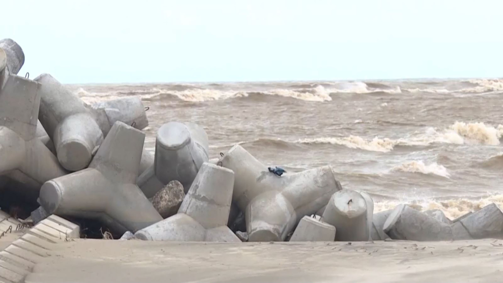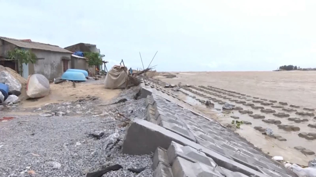 Do ảnh hưởng của bão và hoàn lưu bão số 6, khu vực bờ biển Khê Tân, xã Tịnh Khê, TP.Quảng Ngãi có gió giật mạnh. Ông Lê Văn Hiếu, một người dân ở đây tranh thủ chèn thêm bao cát lên mái nhà đề phòng tốc mái. Còn nạn sạt lở do triều cường, nỗi lo nhất mỗi mùa mưa bão trước đây, giờ đã không còn.
