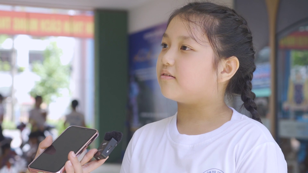 Em Cao Ngọc Phương Thảo, Đội Nghệ thuật Măng Non, Trung tâm Hoạt động Thanh thiếu nhi Diên Hồng chia sẻ: Lần đầu tiên tham gia con rất là háo hức, vui vẻ để mong đến trung thu, để mau đến với các bạn Sơn Hà. Con mong được diễn tuyệt vời dưới ánh trăng rằm tháng Tám.