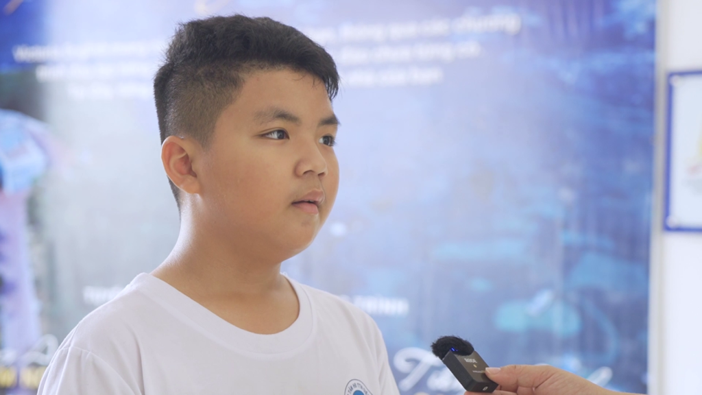 Em Đỗ Hoàng Bách, Đội Nghệ thuật Măng Non, Trung tâm Hoạt động Thanh thiếu nhi Diên Hồng nói: Năm nay rất vui và đặc biệt, đặc biệt hơn năm ngoái. Đặc biệt ở đây là chúng con mang trung thu đến cho các bạn miền núi.
