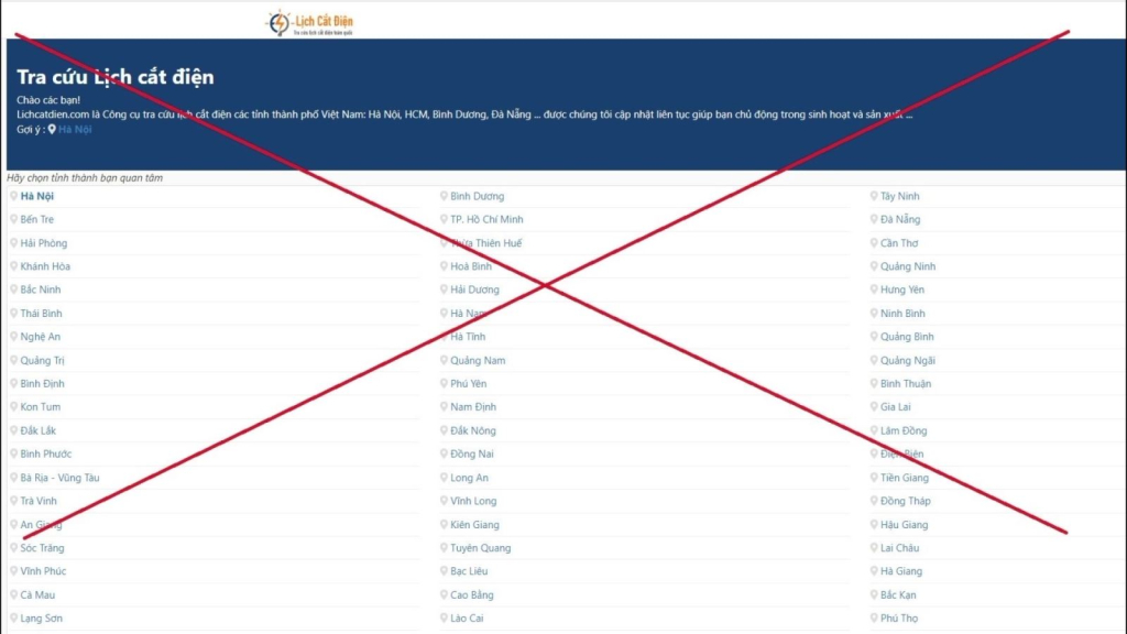 Nhiều website giả thông tin lịch cắt điện