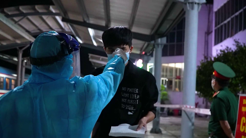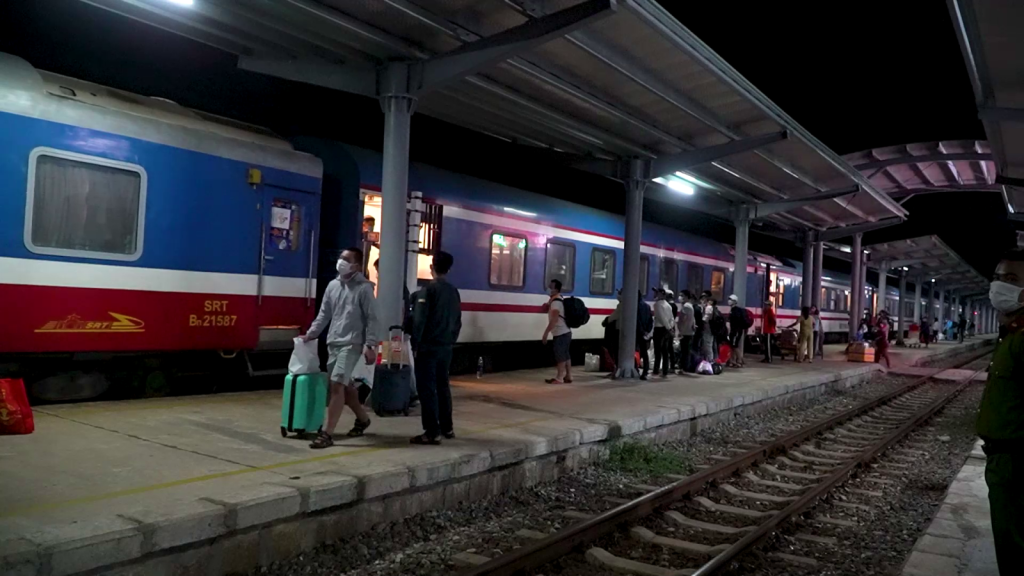 22h15 phút, đoàn tàu SE8 dừng ở ga Quảng Ngãi. Hai mẹ con chị Nguyễn Thị Lan Hương là những vị khách đầu tiên đặt chân xuống ga Quảng Ngãi. Nghỉ hè, đưa con vào TP. Hồ Chí Minh chơi. Không ngờ dịch bệnh bùng phát mạnh, TP. Hồ Chí Minh thực hiện “Ai ở đâu, ở yên đó” nên cả hai mắc kẹt hơn 3 tháng qua. Giờ về được đến nhà, sum họp với gia đình chị trút được nỗi lo.