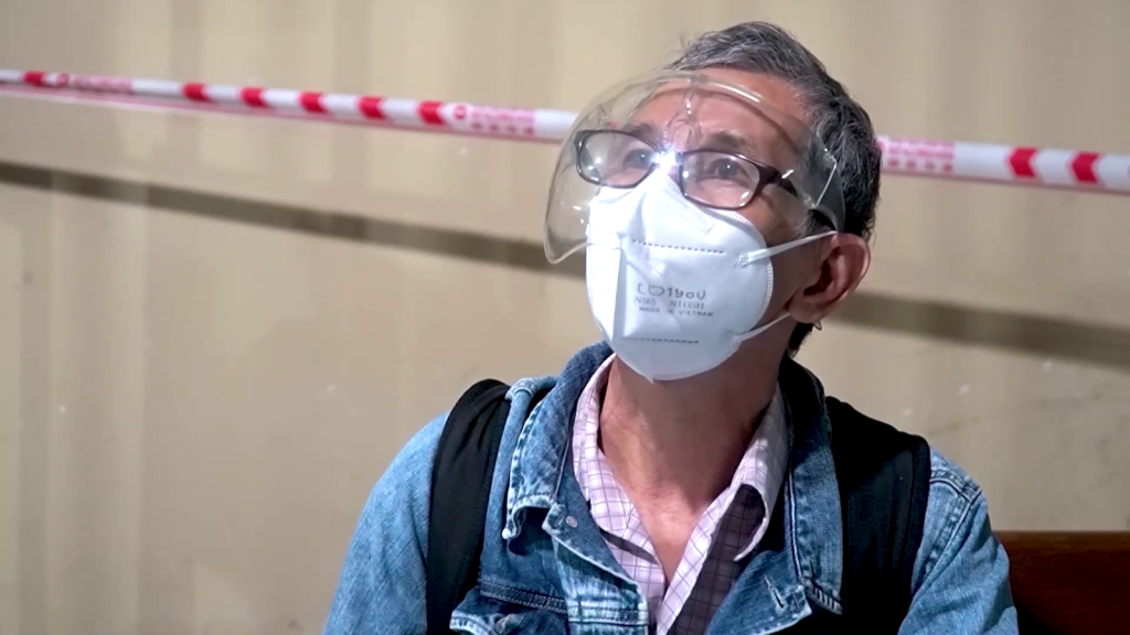 Ông Bùi Trung Chánh, Xã Nghĩa Trung, huyện Tư Nghĩa Quảng Ngãi nói: Vô trong đó đi chữa bệnh bị mắc kẹt 5 tháng. Giờ được về cách ly tại nhà thì mừng phấn khởi.