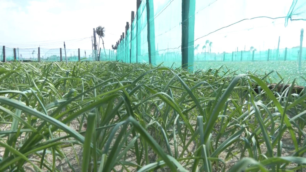 Để bảo vệ cây tỏi không bị thiệt hại bởi mưa gió và nước biển, nông dân huyện đảo Lý Sơn đã giăng lưới trên các cánh đồng. Đây là giải pháp hiệu quả mà nông dân huyện đảo áp dụng để hạn chế sức gió, nước biển và sâu bệnh lây lan cho cây tỏi.