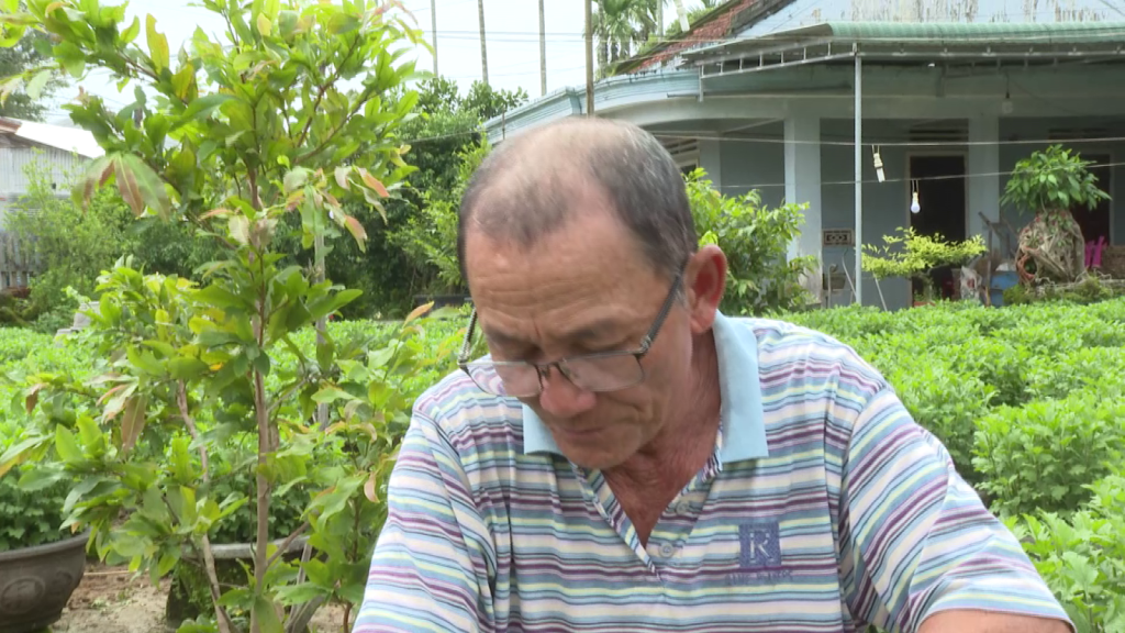 Ông Nguyễn Đình Cự, Xã Nghĩa Mỹ, Tư Nghĩa, Quảng Ngãi nói: Tui xuống giống hoa hồi đầu tháng 8, giờ mình lo cắt cơi cho cây phát triển.