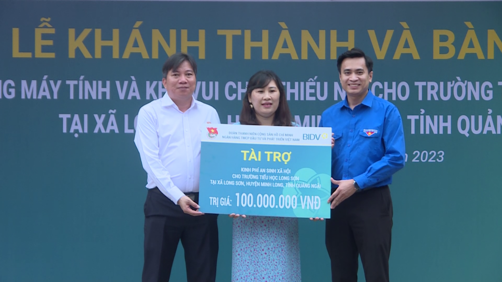 Ngân hàng BIDV Việt Nam hỗ trợ Tỉnh đoàn Quảng Ngãi 250 triệu đồng dành cho các chương trình an sinh xã hội, ngân hàng BIDV - chi nhánh Quảng Ngãi hỗ trợ Tỉnh đoàn Quảng Ngãi 50 triệu đồng xây dựng nhà tình nghĩa và 10 triệu đồng kinh phí chuyển đổi số.