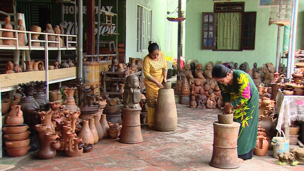 Bà Đặng Thị Trình - Làng gốm Bàu Trúc, huyện Ninh Phước, tỉnh Ninh Thuận, chia sẻ:Truyền thống từ hồi xưa tới bây giờ chúng tôi không bỏ. Mai mốt này tôi già đi thì con chúng tôi sẽ nối nghiệp để làm, nghề này không bỏ được. Nghề ông bà để lại con cháu chúng tôi. Những hoa văn này là do chúng tôi tự nghĩ ra. Minh thích hoa văn nào thì chạm hoa văn đó.