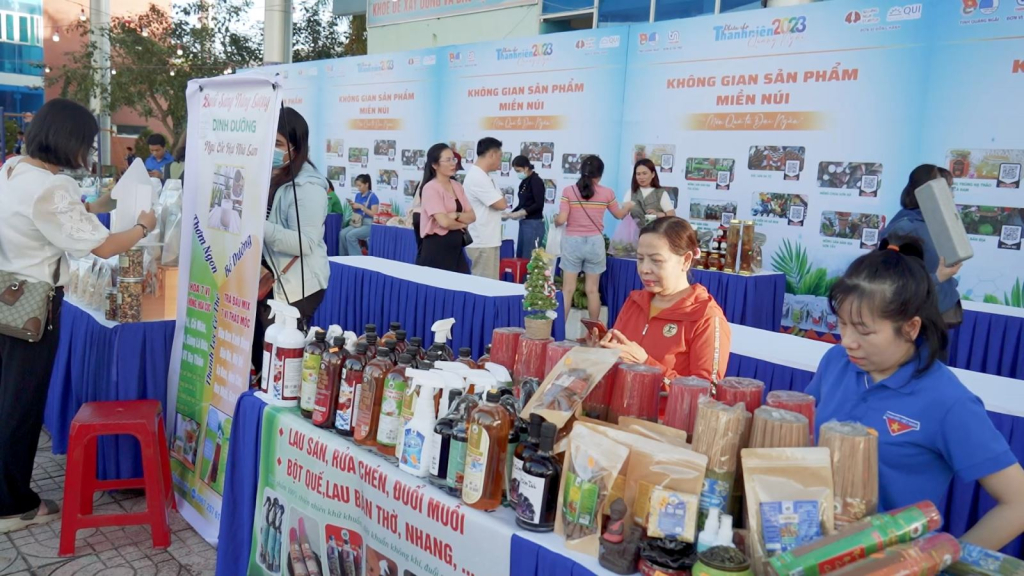 Phiên chợ Thanh niên tháng 12 kết nối nông sản miền núi được Tỉnh đoàn, Hội Liên hiệp Thanh niên Việt Nam tỉnh Quảng Ngãi tổ chức tại Trung tâm Hoạt động thanh thiếu niên Diên Hồng, TP Quảng Ngãi chiều nay (09/12)thu hút khá đông người dân đến tham quan và mua sắm. Hơn 1.000 sản phẩm nông sản vùng đồng bào dân tộc thiểu số và miền núi, sản phẩm khởi nghiệp của thanh niên, sản phẩm OCOP, Vietgap được trưng bày tại phiên chợ.