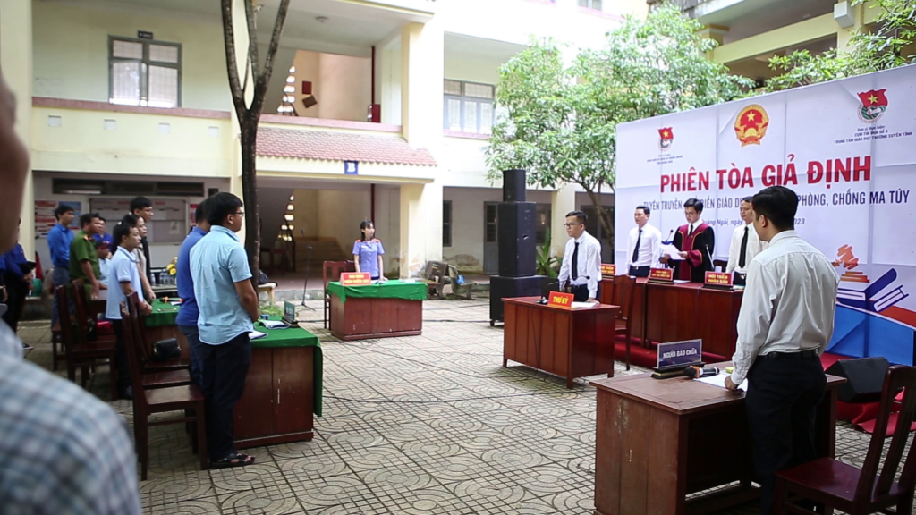 Nội dung kịch bản của phiên tòa dựa trên 01 vụ án có thật. Theo đó, vào khoảng 0 giờ 5 phút ngày 22/8/2022, tại một ngôi nhà ở một khu đô thị trên địa bàn TP. Quảng Ngãi, Công an TP. Quảng Ngãi phối hợp với Công an tỉnh kiểm tra, phát hiện và bắt quả tang một nhóm thanh niên đang có hành vi sử dụng trái phép chất cấm và tạm giữ một số đồ vật có liên quan đến hành vi sử dụng trái phép chất cấm của nhóm người trên.