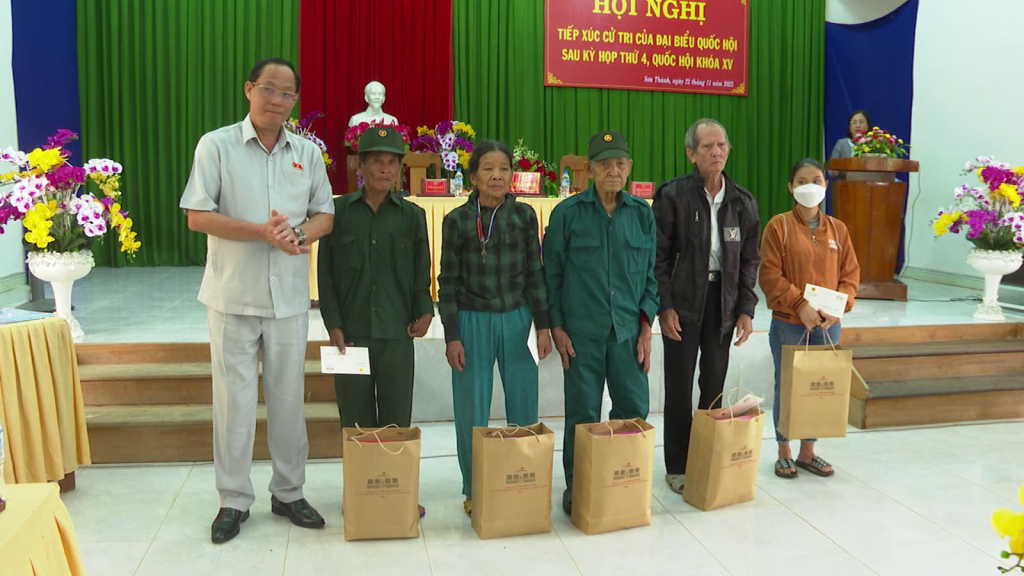 Tiếp tục Chương trình tiếp xúc cử tri sau kỳ họp thứ 4, Quốc hội khoá XV, sáng nay 22/11, Đoàn đại biểu Quốc hội tỉnh gồm Ủy viên TW Đảng, Phó Chủ tịch Quốc hội, Thượng tướng Trần Quang Phương; Phó Trưởng Đoàn chuyên trách Đoàn đại biểu Quốc hội tỉnh Quảng Ngãi Huỳnh Thị Ánh Sương đã tiếp xúc cử tri xã Sơn Thành, huyện Sơn Hà. Tham dự còn có Phó Chủ tịch HĐND tỉnh Nguyễn Tấn Đức.