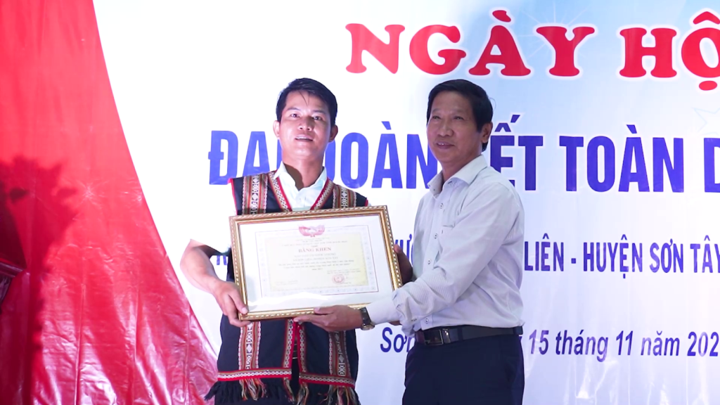 Sáng nay 15/11, Ủy viên Ban Thường vụ Tỉnh ủy, Phó Chủ tịch Thường trực HĐND tỉnh Nguyễn Cao Phúc đã về dự Ngày hội Đại đoàn kết toàn dân tộc ở khu dân cư Nước Vương, xã Sơn Liên, huyện Sơn Tây.
