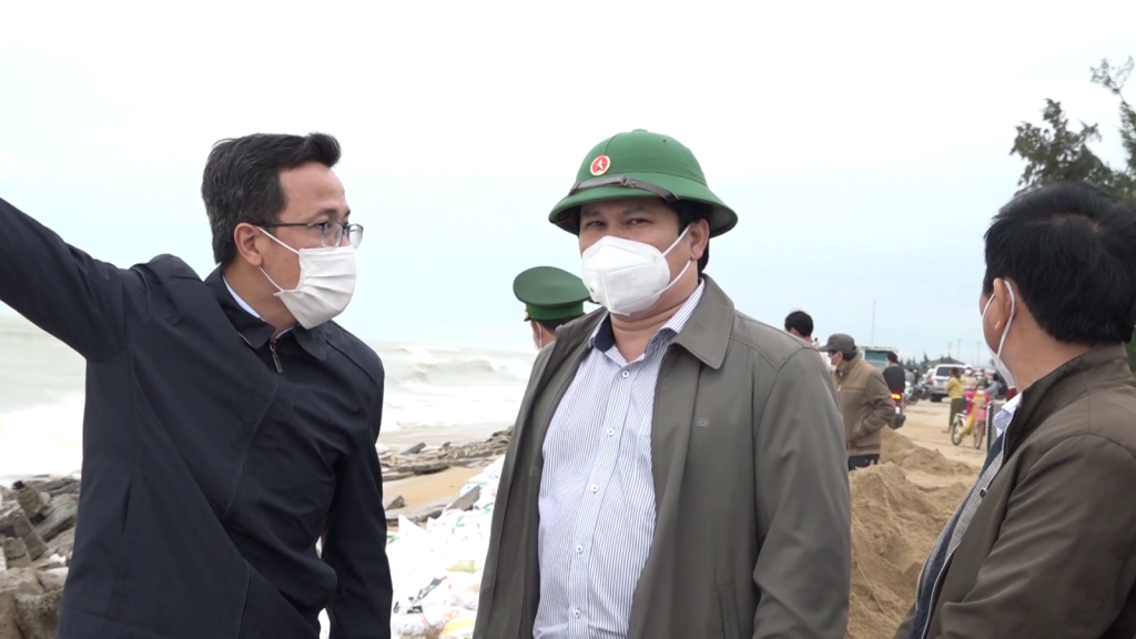 Phó Chủ tịch UBND tỉnh Trần Phước Hiền kiểm tra sạt lở bờ biển xã Nghĩa An