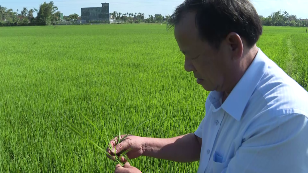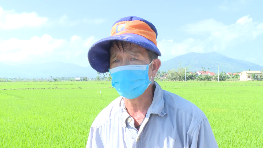 Ông Lâm Châu, Xã Đức Hiệp, huyện Mộ Đức, Quảng Ngãi nói: Cánh đồng này hiện chưa xuất hiện bệnh đạo ôn, nhưng đã xuất hiện bệnh vàng lá sinh lý. Tui đang bón phân dưỡng đòng và theo dõi nếu ruộng lúa bị bệnh thì kịp thời diệt trừ.