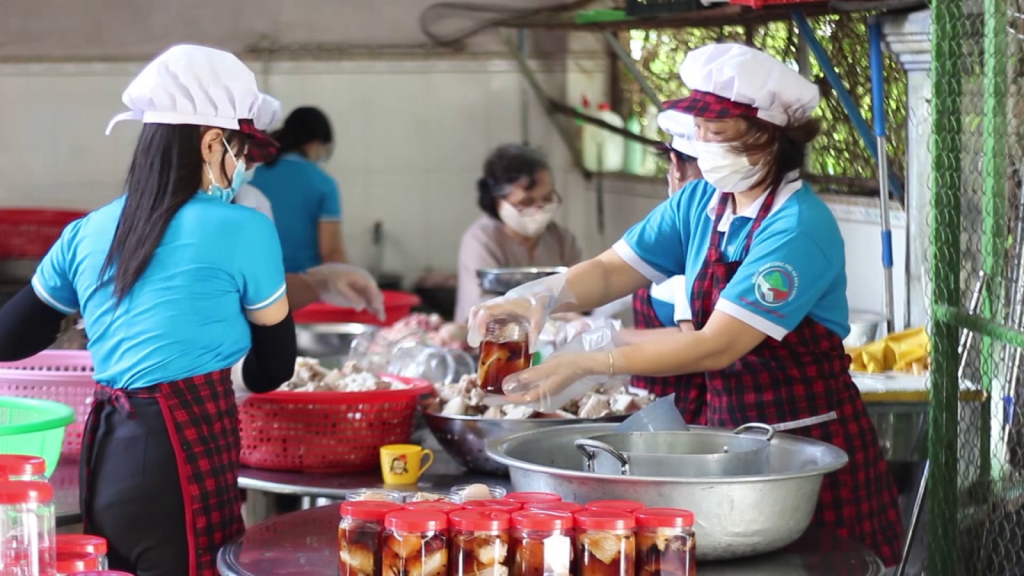 Các hội viên hội phụ nữ làm nhu yếu phẩm hỗ trợ cho người dân khó khăn do dịch COVID-19 ở các tỉnh phía Nam.