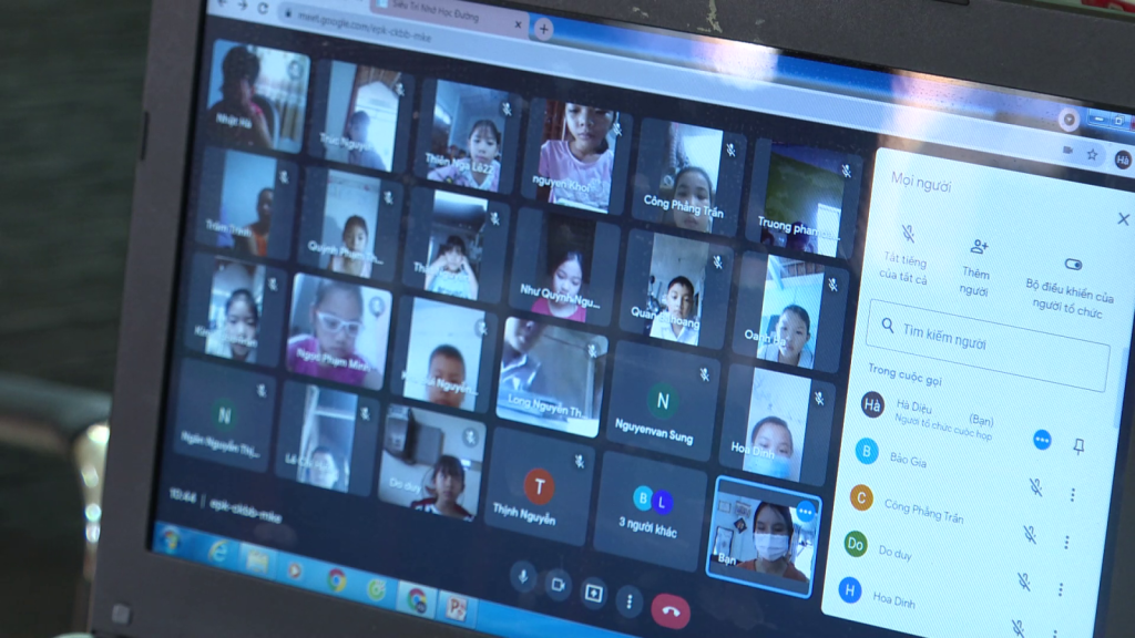 Chị Trần Thị Thùy Dung, Phụ huynh học sinh nói: Học online như thế này, trong giai đoạn đầu cũng hơi vất vả một xíu, vì các em nó chưa quen. Nhưng mình cũng cố gắng sắp xếp thời gian cho con mình, hướng dẫn kèm cặp nó giai đoạn đầu. Mấy ngày đầu cô đã dạy thử thì thấy ổn định. Hôm nay, buổi chính thức đầu tiên học thì mình thấy trẻ rất là ham. Nói chung là, thấy kiến thức cô truyền đạt với trò rõ ràng.