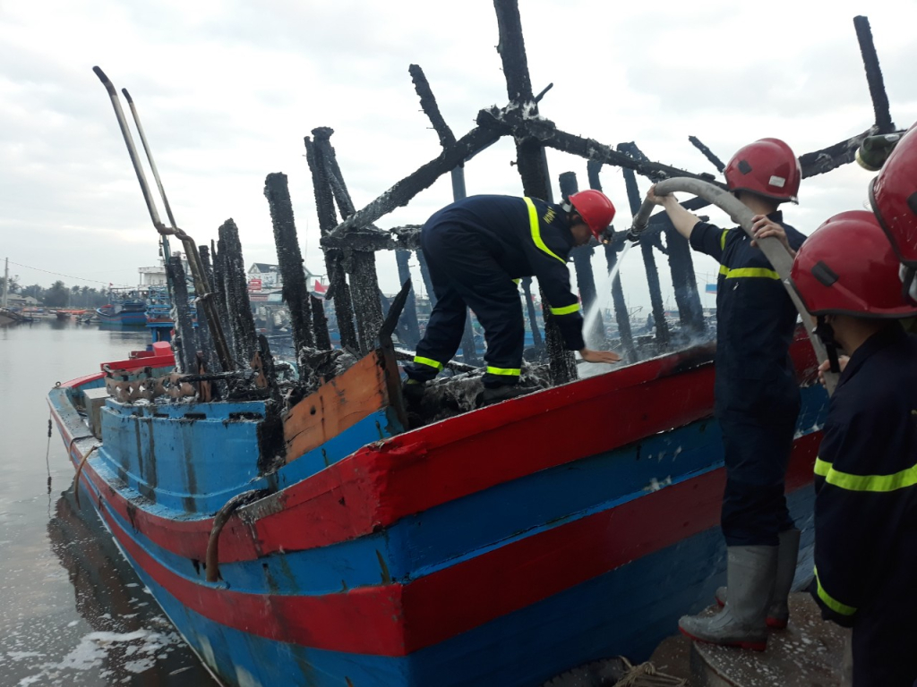 Tàu cá Qng 90869TS, có công suất 820CV bị cháy của ông Võ Bá Nha (thôn Châu Thuận Biển, xã Bình Châu) làm chủ tàu. Đến khoảng 7 giờ cùng ngày lực lượng cảnh sát phòng cháy chữa cháy, Công an xã Bình Châu, lực lượng chức năng cùng người dân đã dập tắt được vụ cháy. Ước thiệt hại ban đầu là 4 tỷ đồng. Nguyên nhân vụ cháy đang được cơ quan chức năng điều tra làm rõ.
