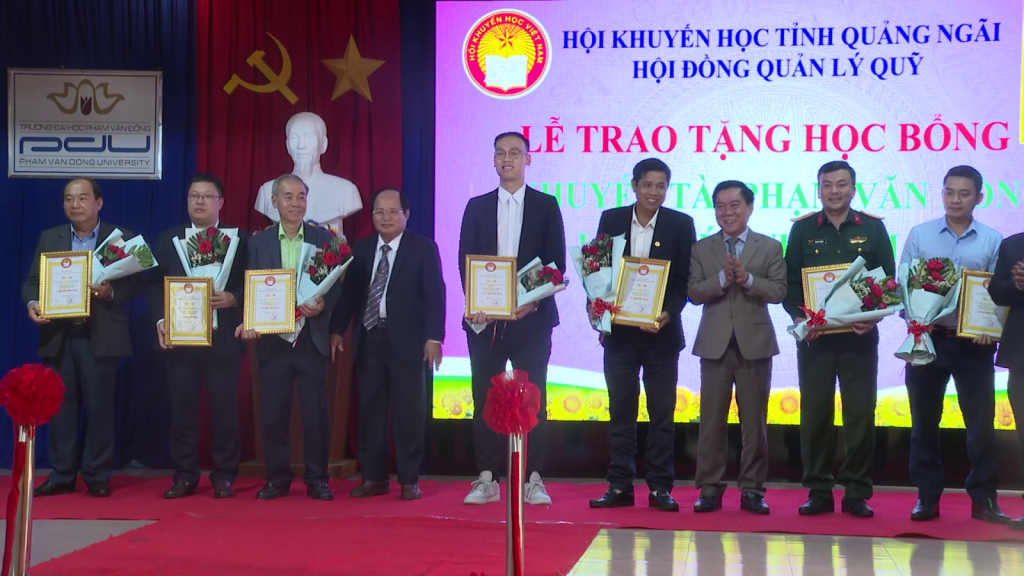 Phó Chủ tịch HĐND tỉnh Nguyễn Tấn Đức, Phó Chủ tịch Uỷ ban MTTQ Việt Nam tỉnh Bùi Đức Thọ, lãnh đạo Sở Giáo dục và Đào tạo, Hội Khuyến học và các nhà tài trợ đã trao 246 suất học bổng Phạm Văn Đồng cho sinh viên xuất sắc 03 năm liền, sinh viên xuất sắc, sinh viên học giỏi 3 năm liền, sinh viên đạt giải cao tại kỳ thi cấp quốc gia. Mỗi suất học bổng cho sinh viên xuất sắc 3 năm liền và sinh viên xuất sắc trị giá 5 triệu đồng. Mỗi suất học bổng cho sinh viên học giỏi 3 năm liền trị giá 3 triệu đồng. Tổng số tiền trao Học bổng Phạm Văn Đồng đợt này là 778 triệu đồng. Đây là năm thứ 17, tỉnh Quảng Ngãi trao Học bổng khuyến tài Phạm Văn Đồng. Tôn vinh sinh viên có thành tích học tập xuất sắc, học giỏi.