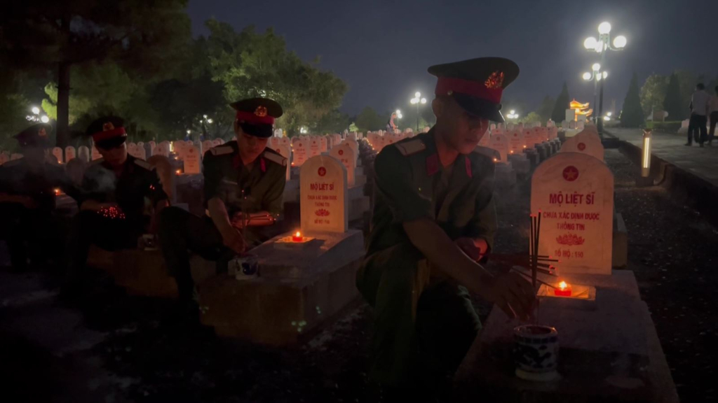 Kỷ niệm 76 năm Ngày Thương binh - Liệt sỹ, tối 26/7, Đoàn Khối các cơ quan Trung ương, Tỉnh Đoàn Quảng Trị phối hợp tổ chức Lễ dâng hương, thắp nến tri ân các Anh hùng liệt sĩ, đồng loạt thắp sang 72 nghĩa trang liệt sĩ, đài tượng niệm trên địa bàn tỉnh Quảng Trị.