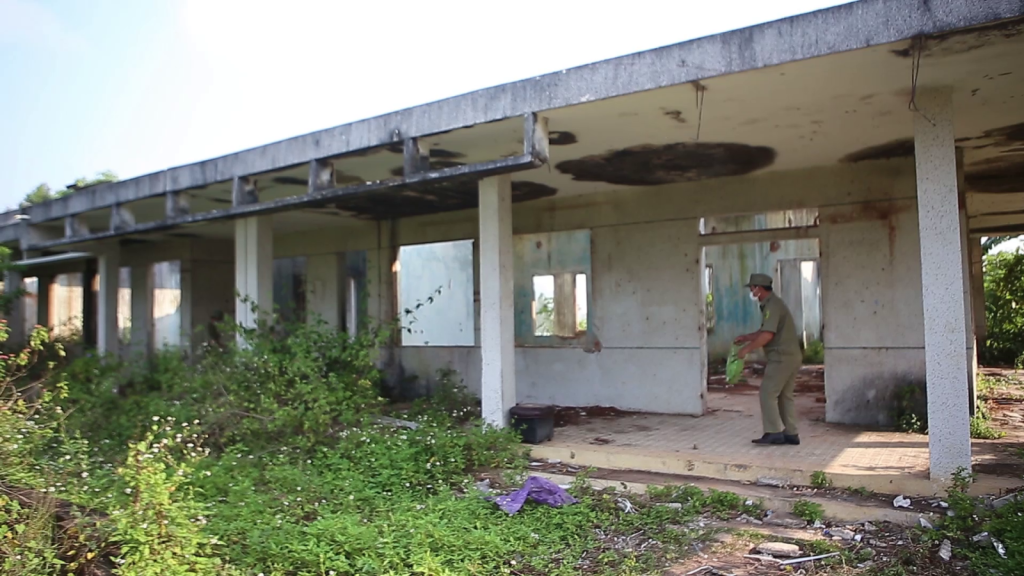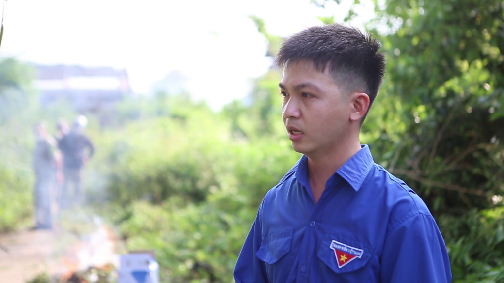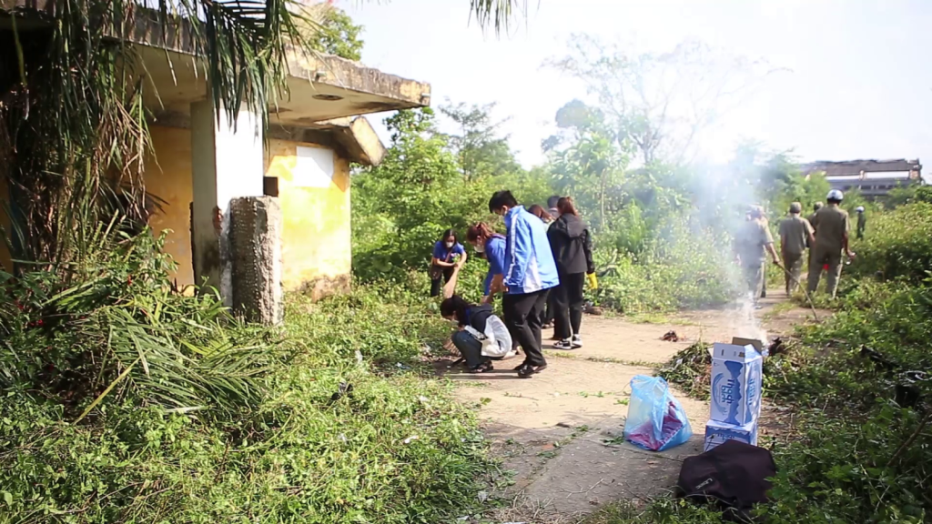Anh Huỳnh Văn Tiến, Phó Bí thư Đoàn phường Nghĩa Chánh, TP. Quảng Ngãi nói: Những nhà hoang này kim tiêm nhiều, tụi em huy động thu gom và đốt theo hướng dẫn để đảm bảo an toàn.