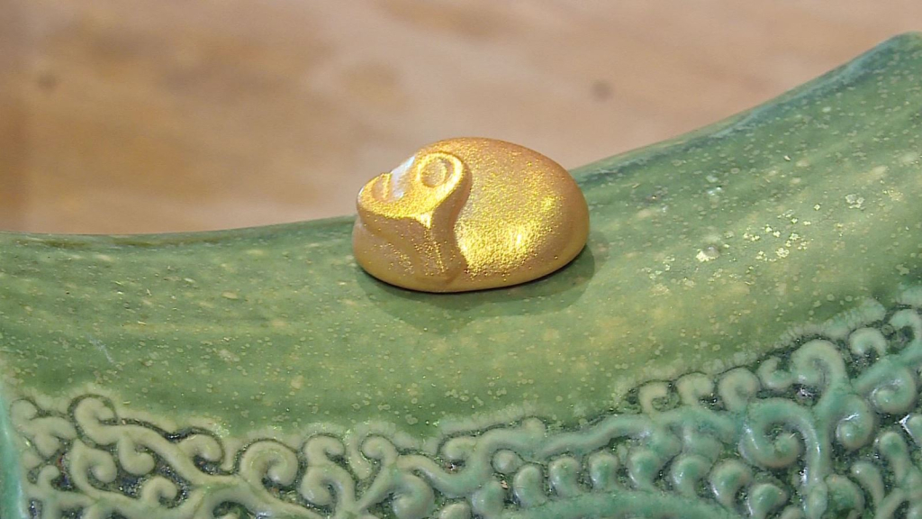 Sử dụng các chất liệu và hình ảnh văn hóa dân gian như hoa cúc, mái đình…, người nghệ sĩ đã có sự kết hợp để tạo ra một bộ sản phẩm trưng bày lấy cảm hứng từ con trâu mang nhiều ý nghĩa và thông điệp.