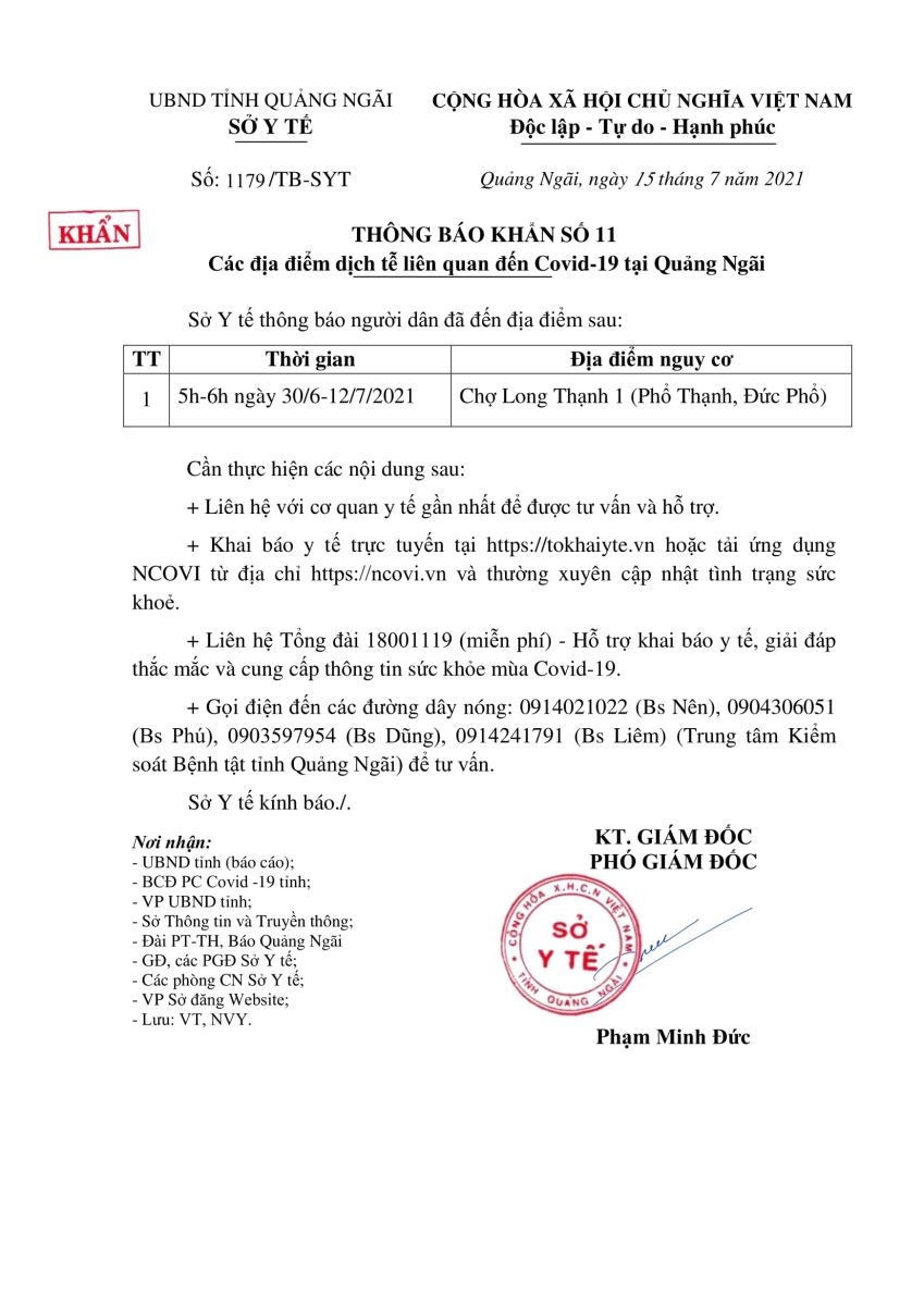 Sở Y tế Quảng Ngãi: Thông báo khẩn số 11