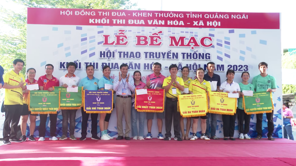 Kết thúc Hội thao, Ban Tổ chức đã trao giải Nhất toàn đoàn cho Sở Văn hoá, Thể thao và Du lịch. Giải Nhì cho Sở Lao động - Thương binh và Xã hội. Giải ba cho Sở Y tế và Sở Thông tin và Truyền thông. Sở Giáo dục và Đào tạo, Sở Khoa học và Công nghệ và Đài Phát thanh và Truyền hình tỉnh Quảng Ngãi đoạt giải khuyến khích. Theo kế hoạch, Hội thao truyền thống Khối Thi đua Văn hoá - Xã hội năm 2024 sẽ do Đài Phát thanh và Truyền hình tỉnh Quảng Ngãi đăng cai tổ chức./.