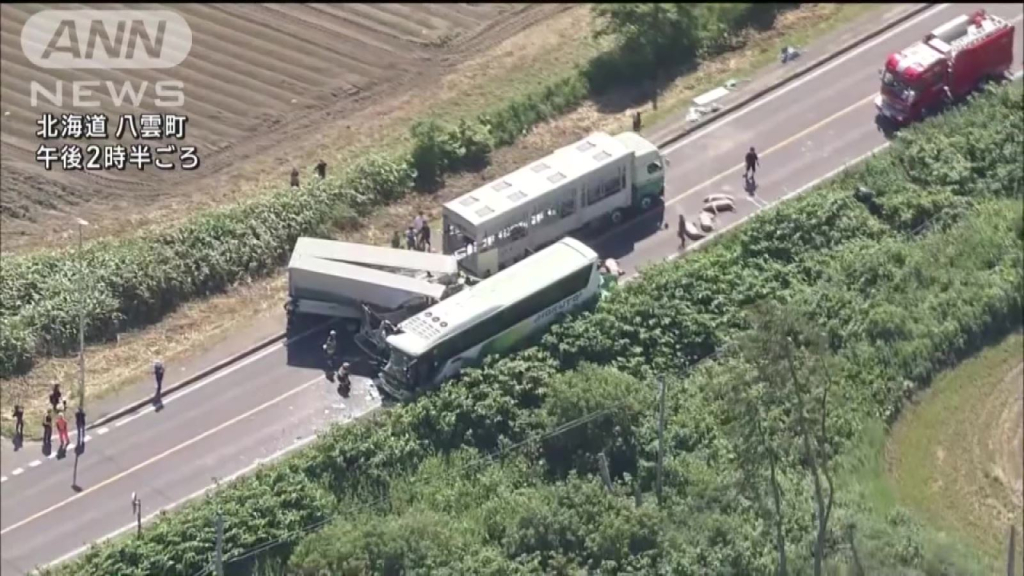 Truyền thông Nhật Bản đưa tin, vụ tai nạn xảy ra vào buổi trưa theo giờ địa phương khi xe tải đâm vào xe buýt chở khách tại một khúc cua trên Đường 5 ở Yakumo, phía Nam Hốc-cai-đô. 17 người đã được đưa tới bệnh viện sau vụ tai nạn. Đến nay đã có 5 người thiệt mạng trong vụ tai nạn, bao gồm tài xế của cả xe tải và xe buýt cùng 3 hành khách trên xe buýt.