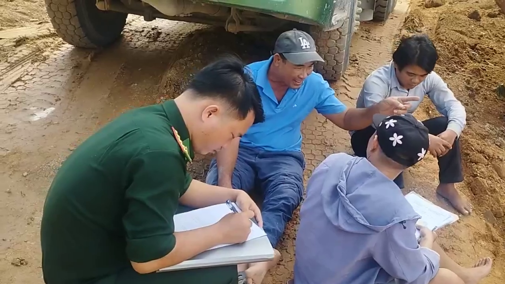 Lúc 9h giờ sáng nay tại bãi đất thuộc Công ty TNHH Một thành viên OGS, ở Thôn Đông Lỗ, xã Bình Thuận, huyện Bình Sơn. Đội đặc nhiệm phòng chống ma túy và tội phạm phối hợp cùng Đồn Biên phòng Bình Thạnh kiểm tra, phát hiện ông Hà Xuân Kỳ (35 tuổi), trú ở xã Tịnh Thọ, huyện Sơn Tịnh điều khiển xe máy đào, múc đất đổ lên xe tải. Qua kiểm tra, tại hiện trường có 02 xe tải khác đang chờ đưa đất lên thùng xe để vận chuyển đến công trình.