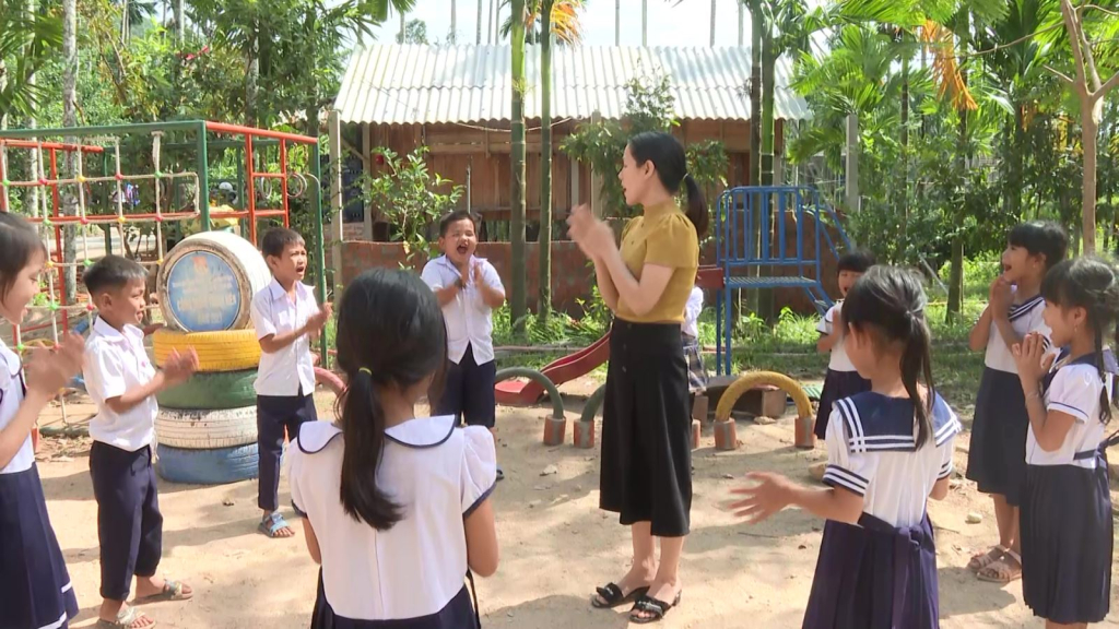 Niềm vui với cô giáo Kem nhân đôi khi thấy học sinh của mình chăm ngoan, học tập, vui chơi, có đủ điều kiện để đến trường đến lớp.