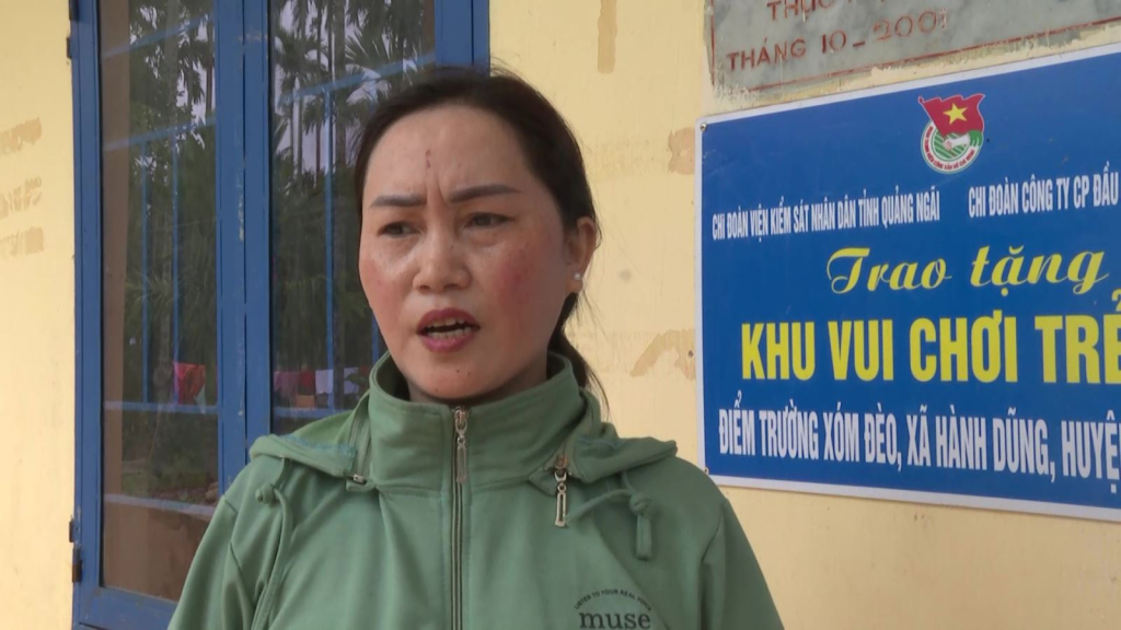 Chị Đinh Thị Hương, Xã Hành Dũng, huyện Nghĩa Hành, Quảng Ngãi nói: Mình tin tưởng ở cô giáo Kem, cô nhiệt tình giảng dạy cho các em và còn tranh thủ ở các đơn vị, các nhà hảo tâm giúp các em nữa.