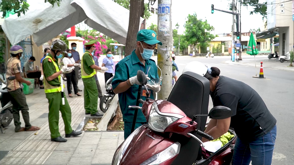 Chốt kiểm soát phòng chống dịch COVID-19 tại Phường Trần Hưng Đạo, thành phố Quảng Ngãi. Lực lượng làm nhiệm vụ kiểm soát lí do người dân ra đường. Công việc nghiêm túc nhưng cũng khẩn trương, tạo điều kiện thuận lợi nhất cho người dân qua chốt.