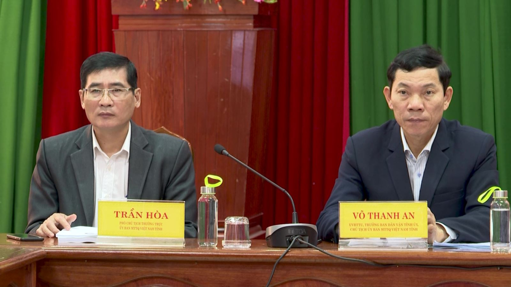 Chủ tịch Uỷ ban MTTQ Việt Nam tỉnh Võ Thanh An cùng lãnh đạo Ủy ban MTTQ Việt Nam các cấp trong tỉnh dự hội nghị điểm cầu Q.Ngãi.