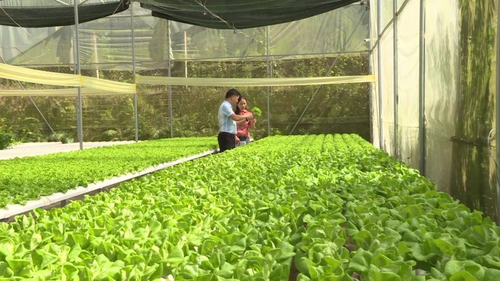 Mô hình trồng rau theo phương pháp thủy canh đang được thanh niên Đặng Minh Triều, thị trấn Di Lăng triển khai trên diện tích gần 300m2. Các loại rau chính được trồng là các loại xà lách giống nhập ngoại và rau cải ngồng. Với chu kì khai thác 45-60 ngày, giá thành 45.000/kg, mỗi năm Đặng Minh Triều thu về gần 150 triệu đồng, trừ chi phí còn khoảng 75 triệu đồng.