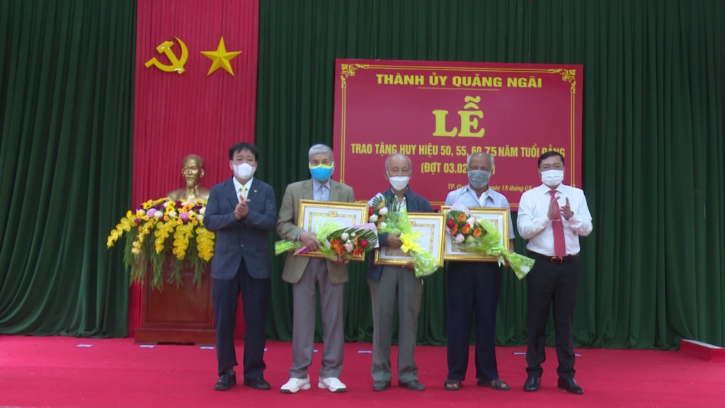 Trong đợt này, Đảng bộ thành phố có 02 đảng viên nhận Huy hiệu 75 năm tuổi Đảng. Trong quá trình hoàn thiện hồ sơ đề nghị trao tặng Huy hiệu 75 năm tuổi Đảng, đảng viên Lê Thanh Liêm thuộc Đảng bộ phường Chánh Lộ đã từ trần. Bí thư Thành ủy Nguyễn Cao Phúc đã đến tận nhà dâng hương và trân trọng trao huy hiệu Đảng cho đại diện gia đình. Đảng viên Nguyễn Thị Minh Ninh thuộc Đảng bộ Phường Trương Quang Trọng do tuổi cao sức yếu nên đại diện gia đình nhận thay.