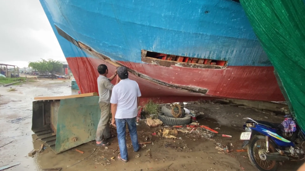 Ngư dân Huỳnh Tấn Thanh, Chủ tàu cá QNg 95234 TS, Xã Bình Chánh, Bình Sơn, Quảng Ngãi cho biết: Nói chung làm rất là nhiều, đủ thứ. Hư be (boong) thì làm be lại, hoặc là sửa sang lại giàn; cái gì hư thì làm lại hết. Riêng phần của bên ghe tôi thì chuẩn bị 150 - 200 triệu. Ghe tôi làm ít á, mới đóng có 4 năm mấy. Nhiều chiếc làm cũ rồi sửa chữa lại máy móc rất là nhiều.