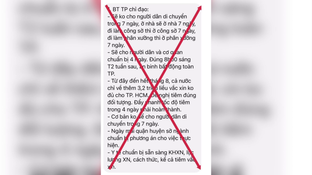Sau Thành phố Hồ Chí Minh, tại Hà Nội cũng đã xuất hiện thông tin "không cho người dân di chuyển trong 7 ngày" đang được chia sẻ trên mạng xã hội. Sở Thông tin và Truyền thông Hà Nội khẳng định đây là thông tin là giả mạo, sai sự thật.