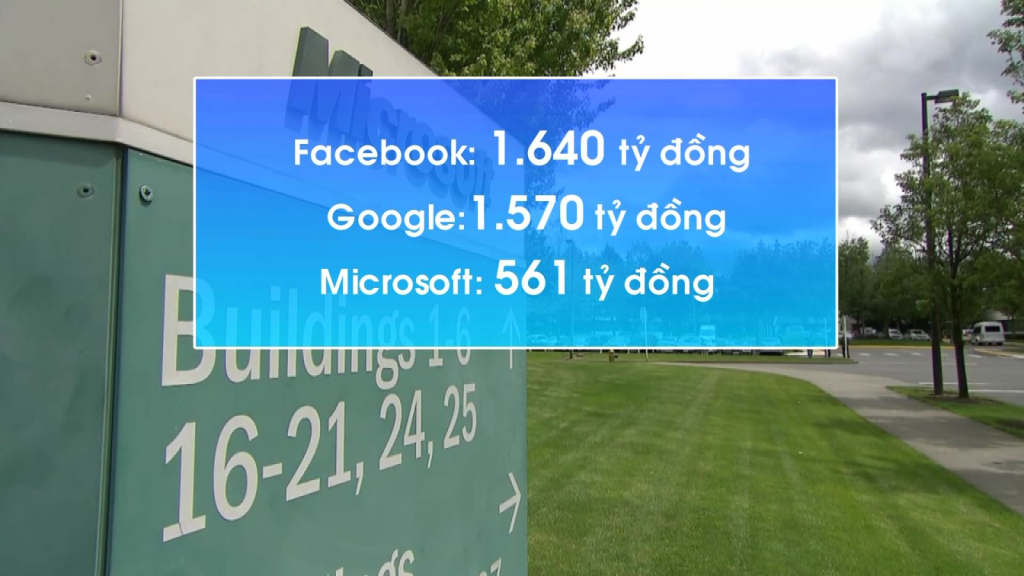 Cụ thể, Facebook là hơn 1.640 tỷ đồng; Google là hơn 1.570 tỷ đồng; Microsoft là gần 561 tỷ đồng.