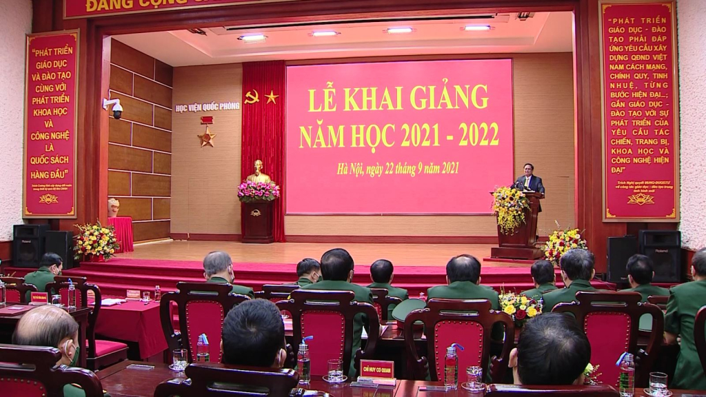 Sáng 22/9, tại Hà Nội, đồng chí Phạm Minh Chính, Ủy viên Bộ Chính trị, Thủ tướng Chính phủ đã dự Lễ khai giảng năm học 2021-2022 của Học viện Quốc phòng (Bộ Quốc phòng). Tham dự buổi lễ còn có các đồng chí: Đại tướng Phan Văn Giang, Ủy viên Bộ Chính trị, Bộ trưởng Bộ Quốc phòng; Nguyễn Kim Sơn, Ủy viên Trung ương Đảng, Bộ trưởng Bộ Giáo dục và Đào tạo.