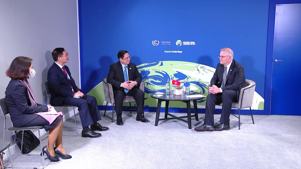 Chiều 01/11 (giờ Vương quốc Anh), trong dịp dự Hội nghị COP26, Thủ tướng Chính phủ Phạm Minh chính đã có các cuộc tiếp xúc song phương với Thủ tướng Australia Scott Morrison, Chủ tịch Hội đồng châu Âu (EC) Ursula von der Leyen.
