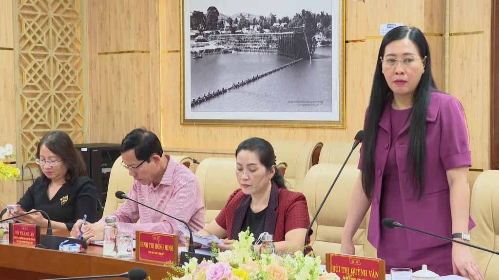 Ủy viên Trung ương Đảng, Bí thư Tỉnh ủy, Chủ tịch HĐND tỉnh Bùi Thị Quỳnh Vân tiếp và làm việc với Đoàn khảo sát của Ban Tổ chức Trung ương.