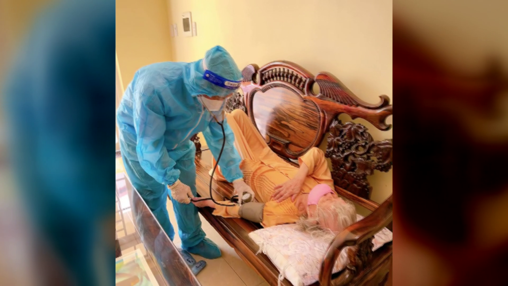 Bà Ngô Thị Sang, quận Tân Bình, TP. HCM nói: Mọi người phải đi tới chích mà mình ở đây Bác sĩ tới dùm là mừng rồi, vui, hạnh phúc lắm.