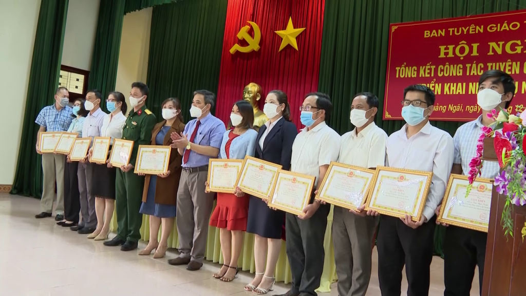 Năm 2021, ngành Tuyên giáo toàn tỉnh đã tham mưu cho cấp uỷ đảng triển khai thực hiện tương đối toàn diện các nhiệm vụ chính trị. Đã tham mưu cho Ban Thường vụ Tỉnh uỷ 03 Chỉ thị có ý nghĩa quan trọng đối với công tác tuyên giáo trong giai đoạn hiện nay. Đó là Chỉ thị về tăng cường xây dựng Đảng về đạo đức. Chỉ thị về tăng cường sự lãnh đạo của cấp uỷ đảng đối với công tác tư tưởng, nhất là nắm bắt, định hướng, giải quyết các vấn đề tư tưởng trong tình hình mới. Chỉ thị về lãnh đạo, chỉ đạo thực hiện chính sách bảo hiểm xã hội, bảo hiểm y tế trên địa bàn tỉnh. Ngành Tuyên giáo đã tham mưu chỉ đạo, hướng dẫn, triển khai kịp thời, hiệu quả công tác tuyên truyền. Nổi bật là tuyên truyền thường xuyên, liên tục, có điểm nhấn về Đại hội toàn quốc lần thứ 13 của Đảng, cuộc bầu cử đại biểu Quốc hội khoá 15 và đại biểu HĐND các cấp nhiệm kì 2021 - 2026. Tuyên truyền nhiều sự kiện quan trọng của đất nước, của tỉnh, đặc biệt là công tác lãnh đạo, chỉ đạo phòng chống dịch COVID-19. Các cơ quan Báo Quảng Ngãi, Đài Phát thanh và Truyền hình tỉnh Quảng Ngãi, báo chí Trung ương đóng trên đia bàn tỉnh, cổng thông tin điện tử của tỉnh, các bản tin, trang thông tin và fanpage, facebook… của các địa phương, cơ quan, đơn vị đã tăng cường tần suất, thời lượng tuyên truyền tạo sức lan toả sâu rộng. Ngành Tuyên giáo toàn tỉnh cũng đã tham mưu, hướng dẫn, theo dõi, đôn đốc công tác tuyên truyền, báo chí, xuất bản năm 2021 kịp thời, đúng định hướng của Ban Tuyên giáo Trung ương, Ban Thường vụ Tỉnh uỷ và phù hợp với tình hình dịch bệnh COVID-19. Tham mưu tổ chức thành công hội nghị sơ kết 05 năm thực hiện Chỉ thị số 05 và hướng dẫn thực hiện Kết luận số 01 của Bộ Chính trị về học tập và làm theo tư tưởng, phong cách Hồ Chí Minh có chất lượng. Đội ngũ báo cáo viên, tuyên truyền viên, cộng tác viên dư luận xã hội các cấp được quan tâm củng cố, kiện toàn. Hoạt động đấu tranh phản bác thông tin xấu độc trên không gian mạng chuyển biến tích cực, góp phần bảo vệ vững chắc nền tảng tư tưởng của Đảng. Công tác biên soạn, phát hành và tuyên truyền, giáo dục lịch sử Đảng, lịch sử truyền thống được quan tâm thực hiện.